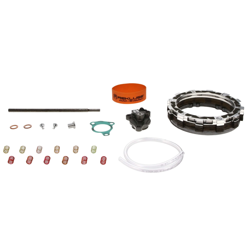 A high-performance, stall-preventing auto clutch is just a clutch pack swap away. RadiusX combines TorqDrive friction disk technology with next-generation EXP 4.0 auto clutch disk functionality. Paired together, TorqDrive clutch disks and EXP 4.0 deliver stronger power delivery, improved clutch durability, and rider-focused, auto clutch functionality, all in the framework of a drop-in clutch pack. EXP 4.0 prevents engine stalling so riders can focus on their line and let the clutch do the rest, while TorqDrive provides increased power transfer and durability over OEM. Each RadiusX kit also includes Rekluse basket sleeves, protecting OEM baskets from notching. This latest generation RadiusX clutch kit from Rekluse is the perfect choice for riders looking for unmatched clutch functionality within the convenience of a clutch pack.