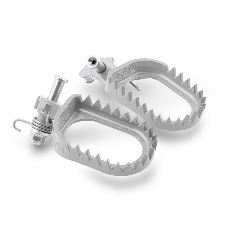 S3 Punk Silver steel footpegs 3mm lowered and 5 mm backward compared to the OEM for Sherco SE 125-250-300 2T and SEF 250-300-450-500 4T from 2014 to 2026