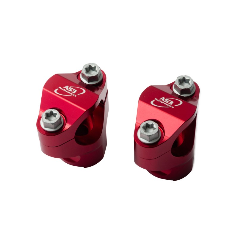 Supporti manubrio in ergal anodizzati rossi prodotti da AS3 per Beta RR/Xtrainer 125-200-250-300 2T e RR 350-390-430-480 4T dal 2012 al 2026