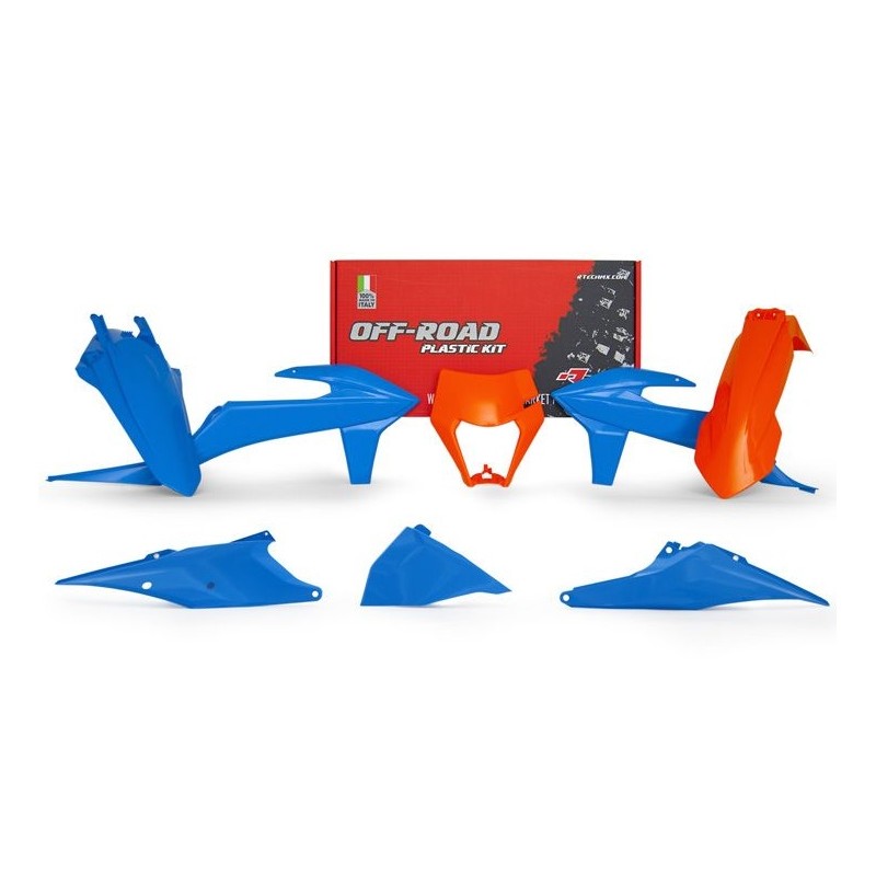 Kit plastiche Racetech 5 pezzi colore Azzurro/Arancio per KTM EXC 150-250-300 2T TPI e EXC-F 250-350-450-500 4T dal 2020 al 2023