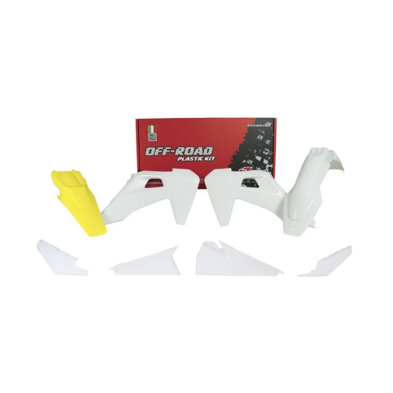 Kit plastiche Racetech 5 pezzi colore Bianco/Giallo limone per Husqvarna TE 150-250-300 2T TPI e FE 250-350-450-501 4T dal 2020 al 2023