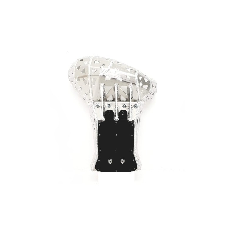 Realizzato in alluminio ad alta resistenza con pieghe e nervi di rinforzo a cui viene rivettata una lastra in plastica nella parte inferiore, ideale per proteggere contro gli impatti a cui sono esposte le moto da Enduro (consigliato soprattutto per Enduro estremo)
