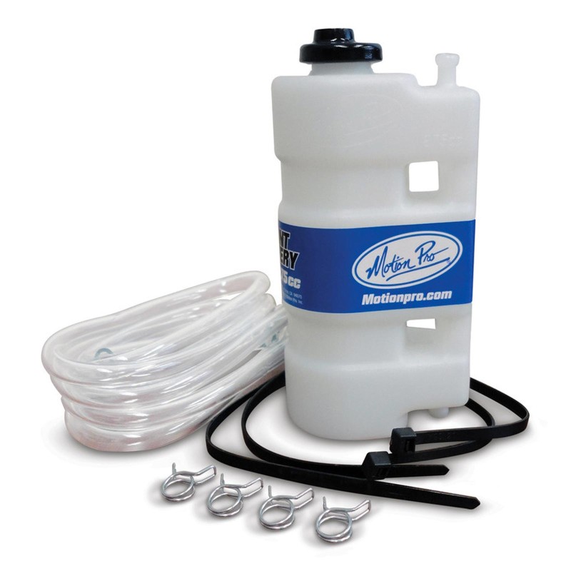 Kit vaso d'espansione Motion pro universale per moto enduro 2T e 4T, permette di recuperare il liquido fuoriuscito dal tappo radiatore a seguito di un surriscaldamento del motore e di reimmeterla nel circuito di raffreddamento appena la temperatura/pressione diminuisce.