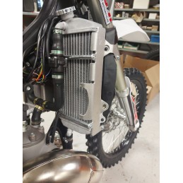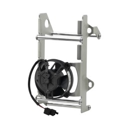 Protezioni radiatori Crosspro per Rieju MR 200-250-300 2T Pro/Racing/Ranger/Sixdays dal 2020 al 2026 con supporto per ventola di raffreddamento originale Rieju con codice 0/K05.060.9100 o ventole Spal (interasse fori 82mm)