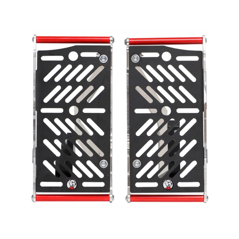 Realizzati appositamente per l'enduro estremo, questi radiatori offrono la massima protezione avvolgendo i radiatori ed essendo collegati alla parte centrale del telaio per fornire il massimo della rigidità e limitare le deformazioni.
